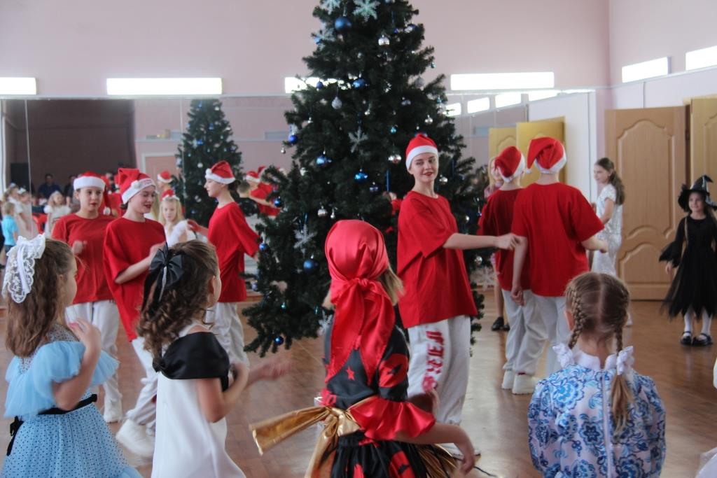 Ребят ожидало прекрасное, доброе и весёлое представление «Нас встречает Новый год». Ребята зарядились хорошим настроением и энергией в конкурсах у новогодней ёлки. Впереди ребятам предстояло попробовать себя в зажигательном флешмобе с образцовым художественным коллективом «Жемчужина», где ребята попробовали себя в зажигательных современных танцах.